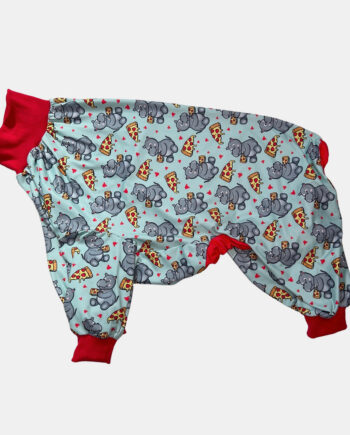 Pitbull Pajama Party Alert! Cozy up with your furry friend in the charming Tooth & Honey PitBull Pajamas! These snug pajamas are crafted with a smile-inducing all-over Hippo eating pizza finished with bright red trim. Perfect for chilly nights, post-surgery snuggles, soothing itchy skin, and simply lounging about. Your pitbull will love the stretchy, lightweight material and snug fit, thanks to the elastic undersides. Get ready to enjoy some sweet dreams and endless snuggles with these irresistible pitbull pajamas!